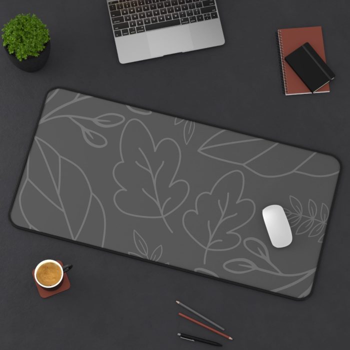 Botanical line art grey desk mat, minimalist desk mat for workspace, crafting desk mat, computer mousepad for office, gaming mousepad.