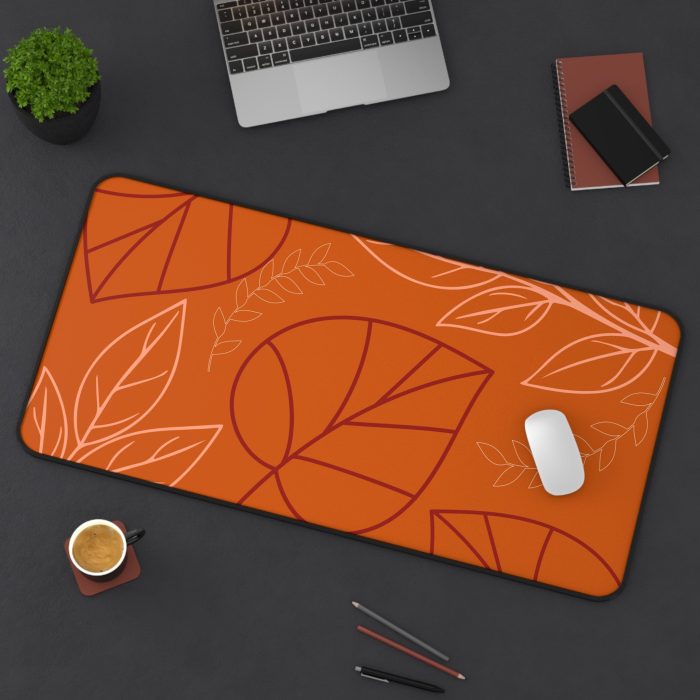 Botanical line art orange desk mat, minimalist desk mat for workspace, crafting desk mat, computer mousepad for office, gaming mousepad.