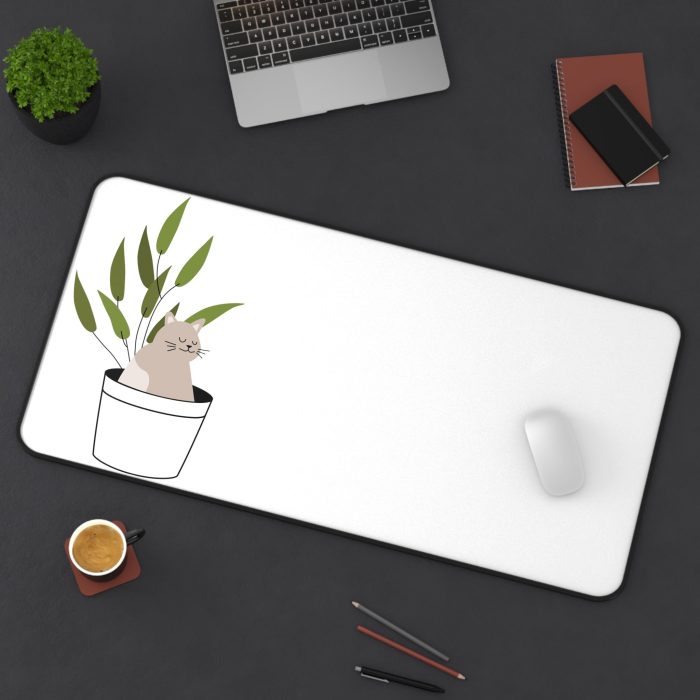 Cute Large Cat Desk Mat, Simplistic Simple Plant detail, Minimalistic Elegant Mouse Pad.