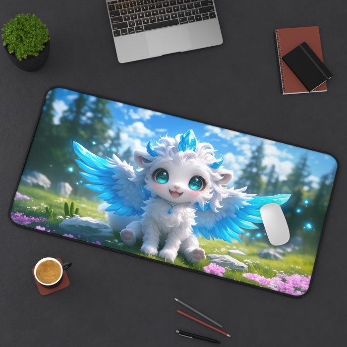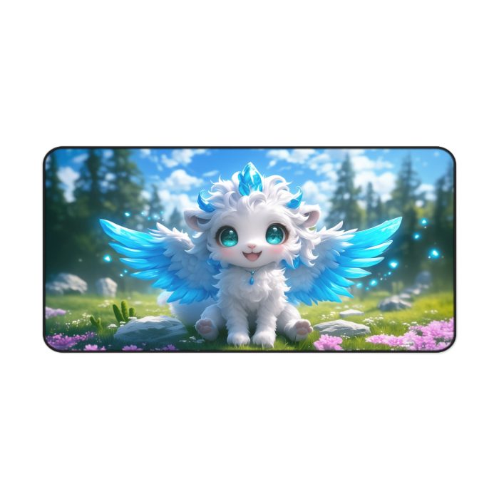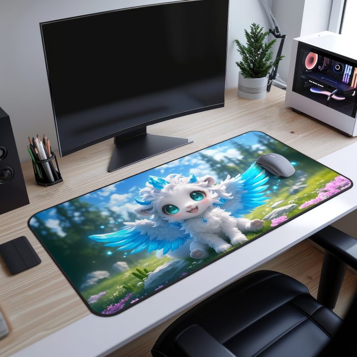 Immerse yourself in the enchanting ambiance as the adorable white monster pet captivates with its innocence, adorned with wings that shimmer in a celestial azure hue. The intricate details and sparkling accents create a scene that transcends the ordinary, inviting you to embrace the magic and inspiration as you navigate through your digital realms.