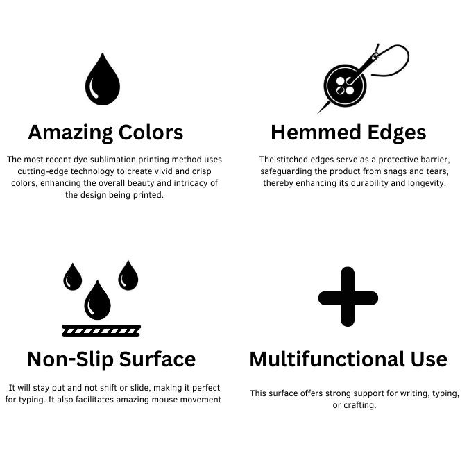 These large mouse pads are ideal for any desk. The surface is extremely smooth and is perfect for gaming mice. It can also be used as a writing pad. Our mouse pads are aesthetic as well as have very good physical quality. They protect surfaces from scratches and are also water-repellent. They are also easy to clean if something goes wrong.