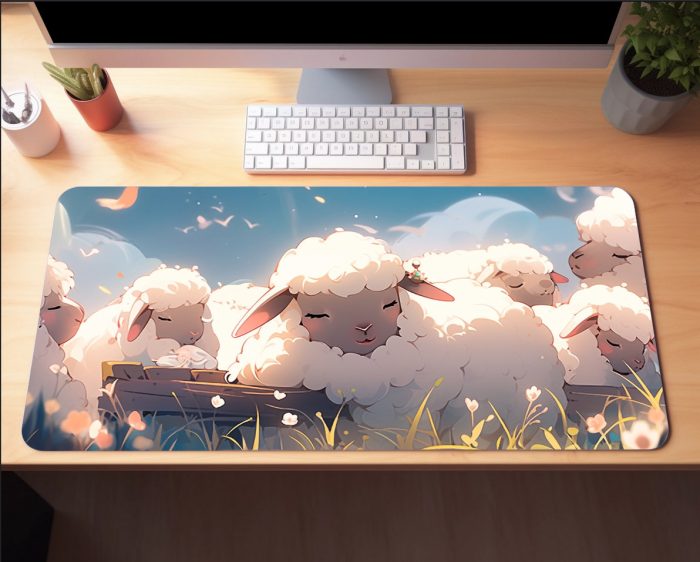 Cute Sheep Desk mat, Kawaii Lamb Mouse Pad, Gaming Desk mat, Anima Desk mat, Cute Play Mat, MTG Sheep Desk Mat, Lofi Mouse Pad,Gift for her