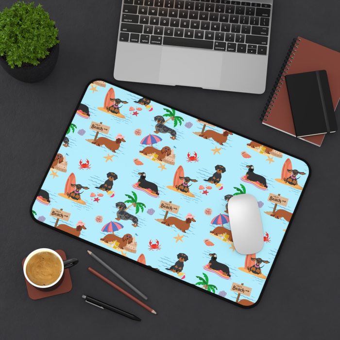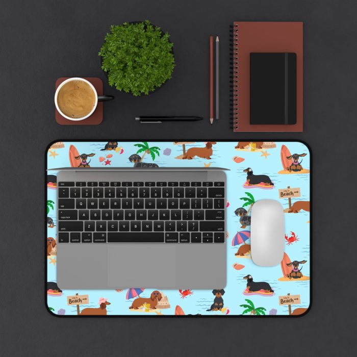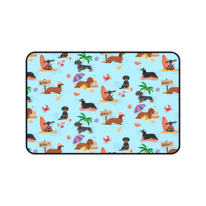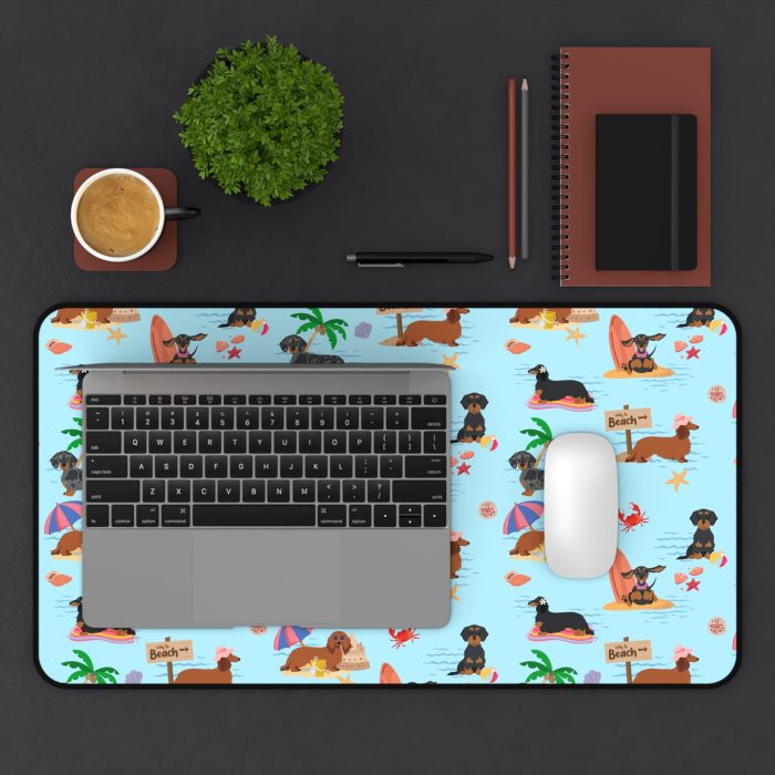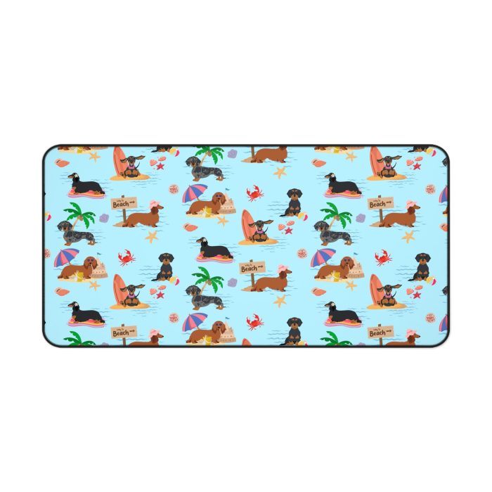Dachshund Beach Desk Mat, Summer Home Office Decor, Large Gaming Mousepad, Dog Mom Mothers Day Birthday Gift, Gift for Coworker, Wiener Dog