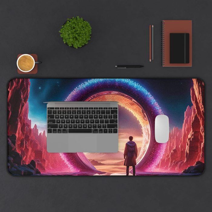 Doorways of Grok 007 Desk Mat | Retro Futuristic Sci-Fi Concept Art | Exploring Distant Planets | Office Bedroom Decor