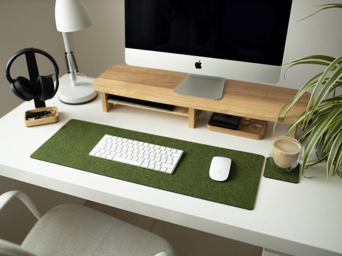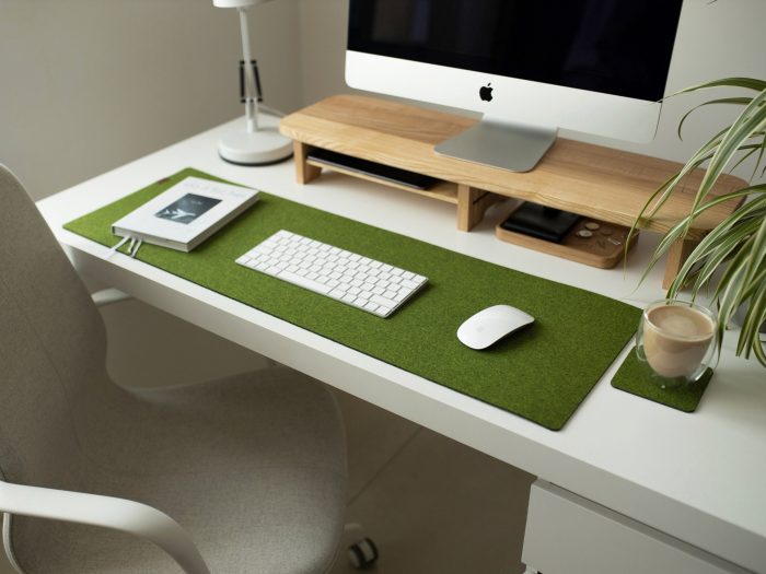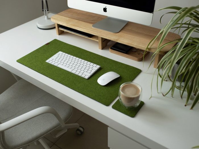 Looking for a stylish way to upgrade your workspace? Look no further than this gorgeous green felt desk mat. Made from high-quality felt, desk pad provides a soft and comfortable surface for your hands while typing and working.