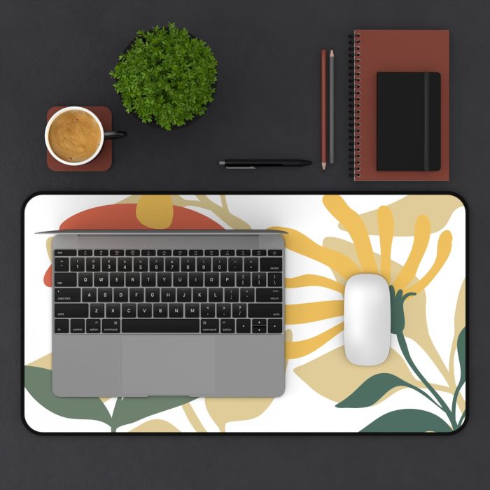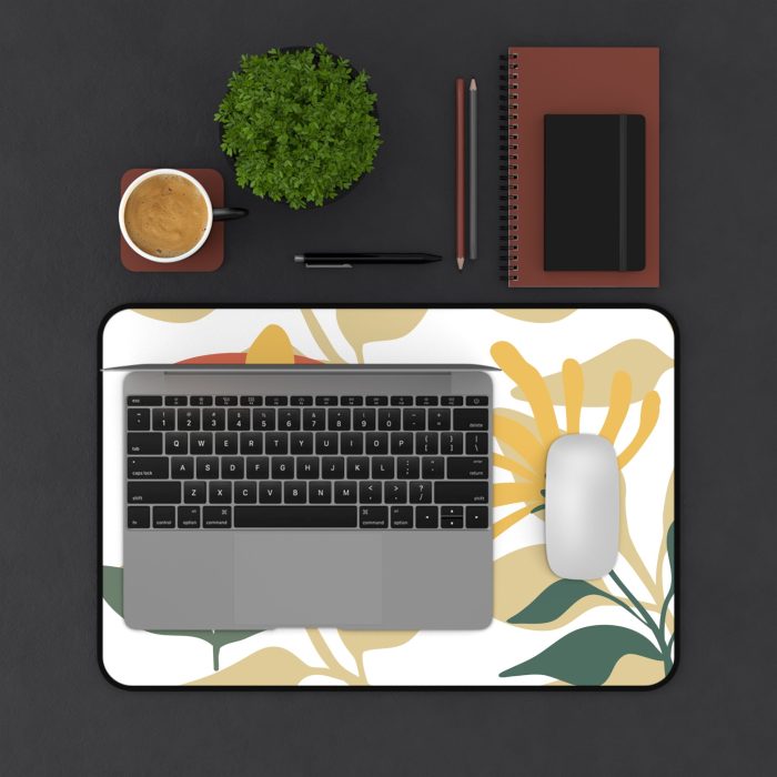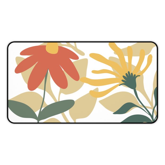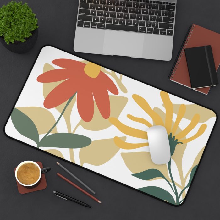 Floral Abstract Desk Mat, Computer desk mat with elegant Simplistic Simple Floral detail, Minimalistic Mouse Pad.