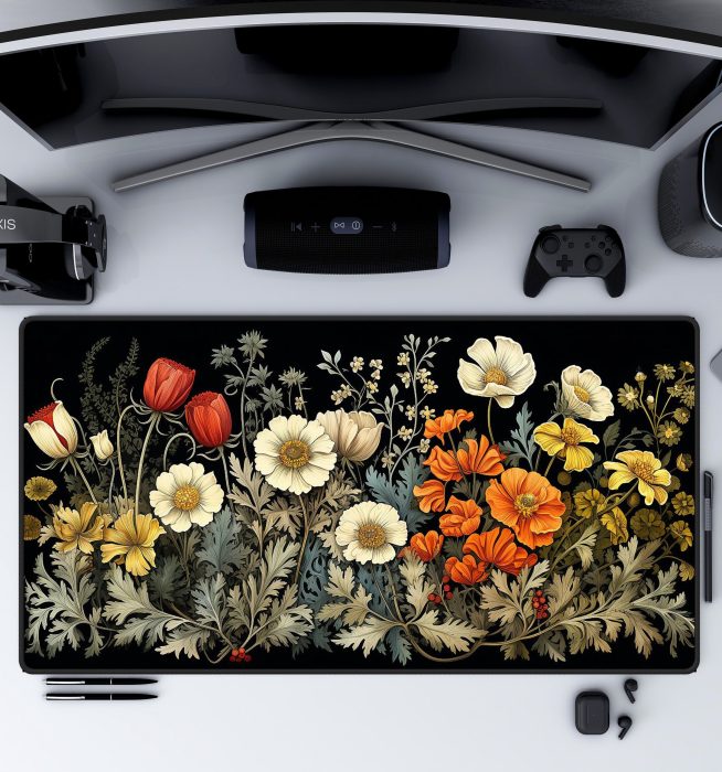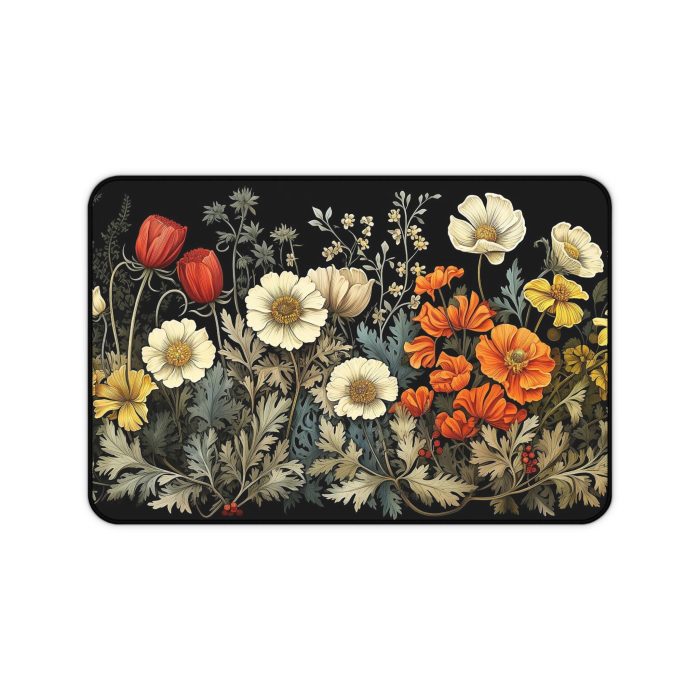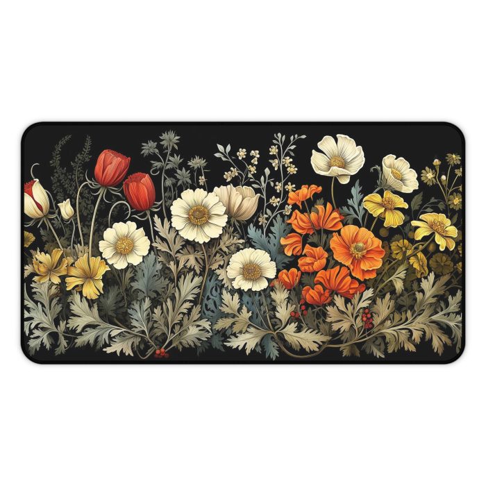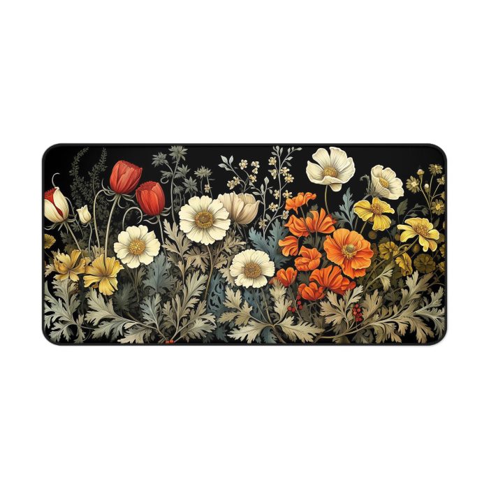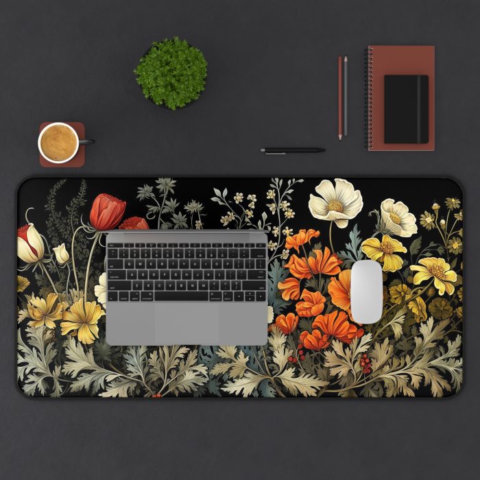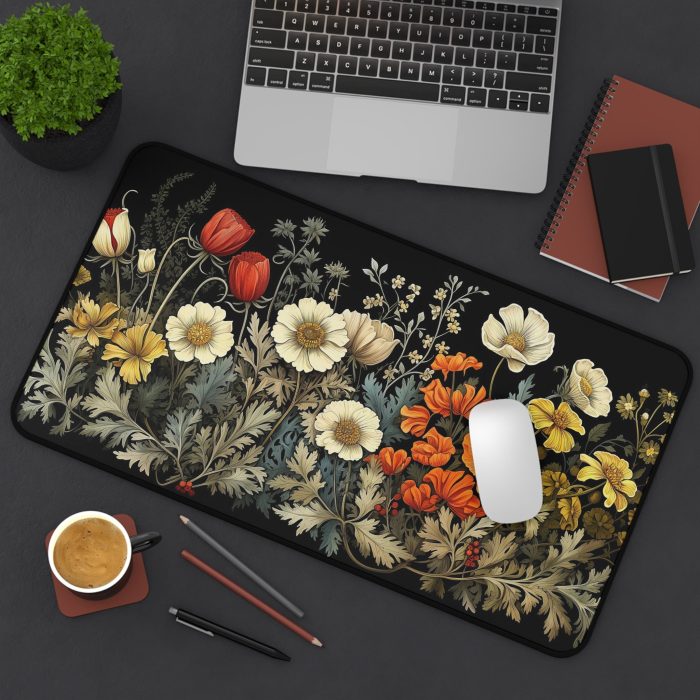 Floral Desk Mat, Large Desk Pad, Autumn Flowers Office Decor, Botanical Workspace Accessory, Extended Mouse Pad, Garden Illustration