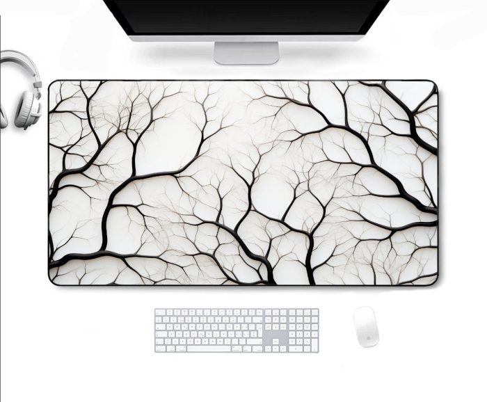 Gothic Veins Desk Mat, Black White Horror Desk Pad, Blood Vessel Desk Mat, Anime Mouse Pad, Retro Geometrix Desk Mat, Seamless Pattern Desk
