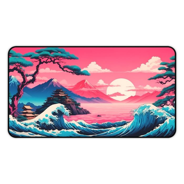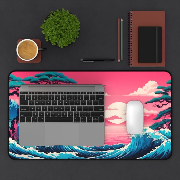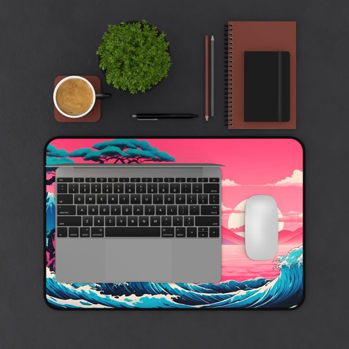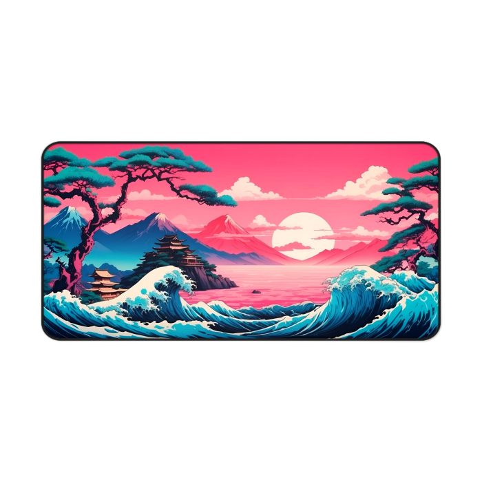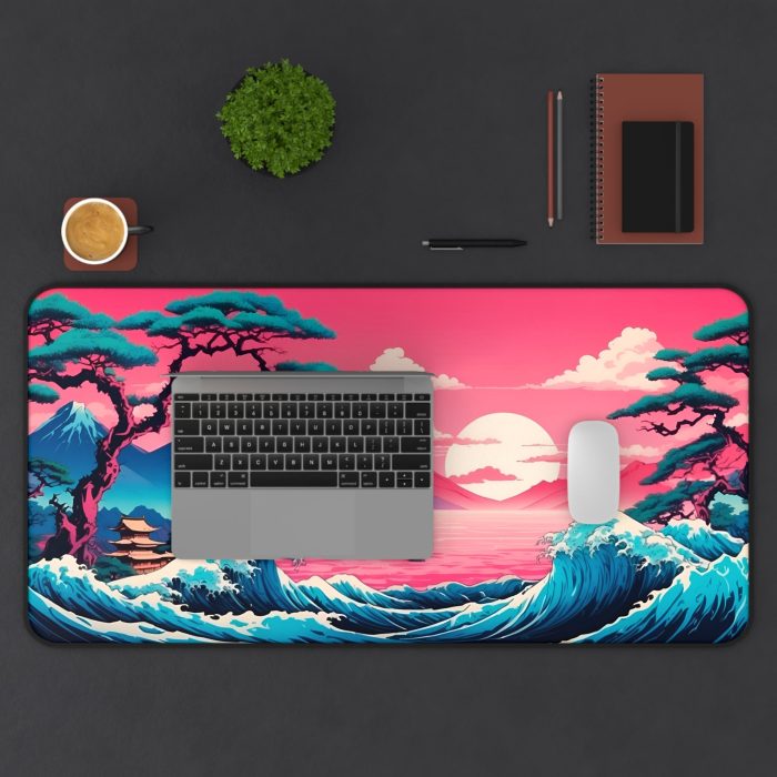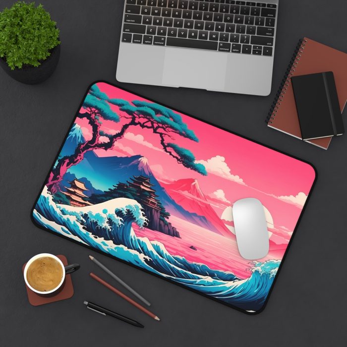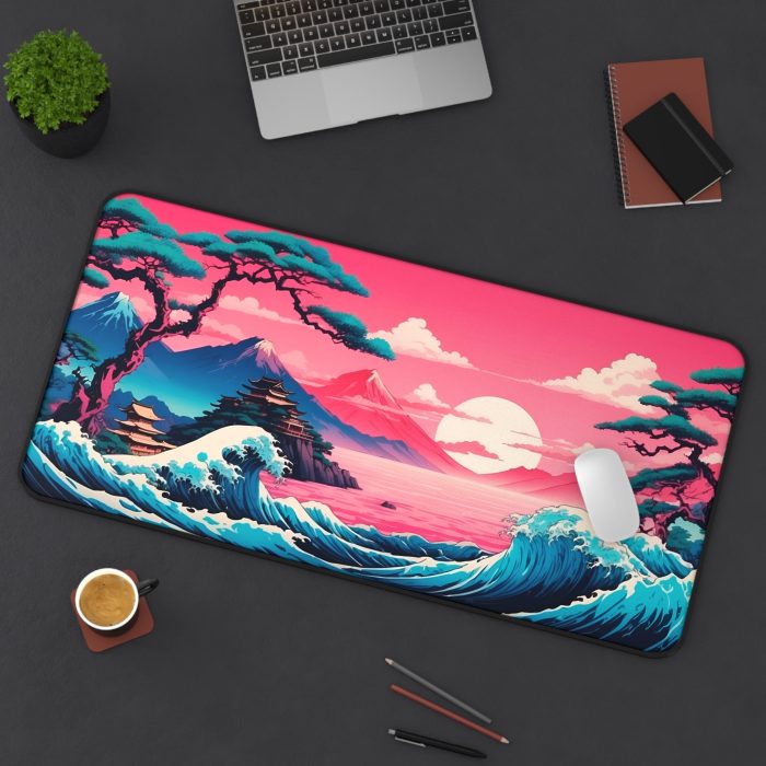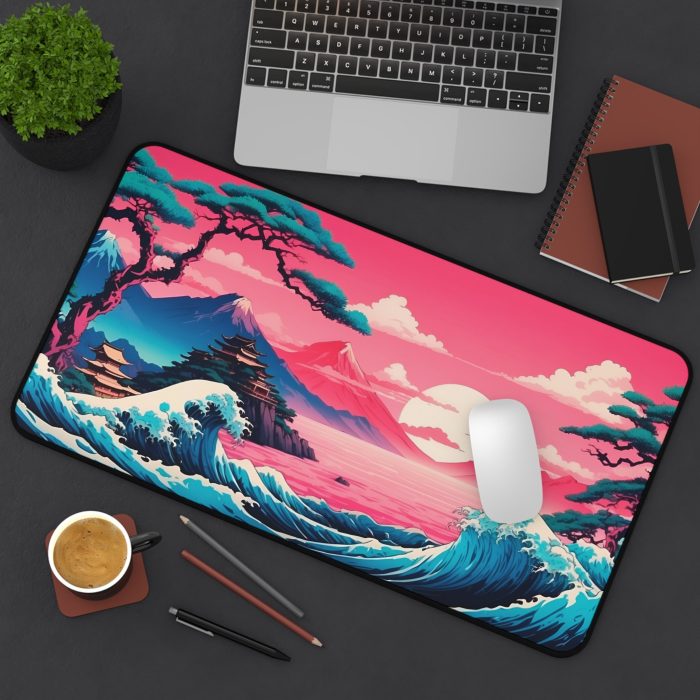 Japanese Landscape Desk Mat, Kanagawa Wave Design, Artistic Gift, Enhances Workspace Aesthetics, Unique Housewarming Gift, Birthday Gift