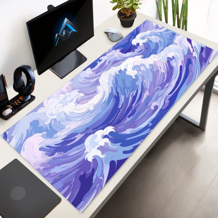 Kawaii Mousepad Waves, Anime Aesthetic Mousepad, Japanese Mousepad Water, Purple Mousepad, Gaming Mousepad, RGB Desk mat