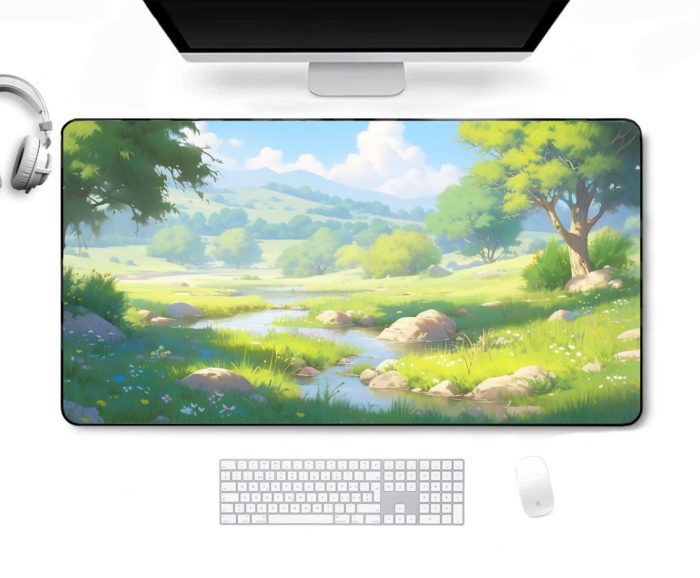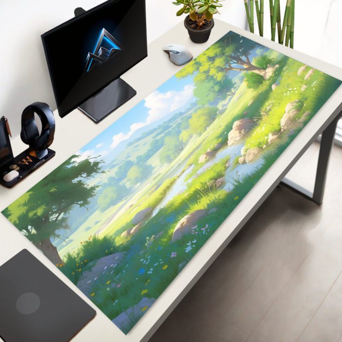 Lanscape Green Mousepad, Nature Desk Mat Large, Anime Aesthetic Mousepad, Lorcana Playmat, MTG Desk Mat, Cute Desk Mat, XL Gaming Mousepad
