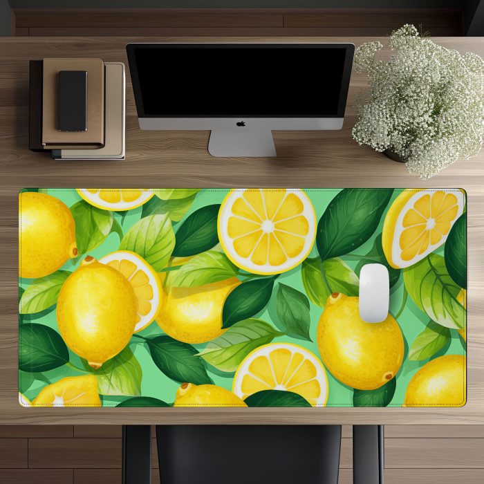 Lemons And Lemon Slices Desk Mat, Aesthetic Desk Decor, Desk Accessories, Office Decor, Desk Decor, Fruit Pattern