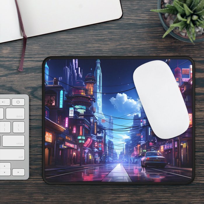 Drift into the serene embrace of urban tranquility with our LoFi Mousepad, the quintessential office companion for those who yearn for a peaceful retreat amidst their bustling workday. This mousepad is a harmonious symphony of ambient vibes and vibrant cityscapes, capturing the essence of a neon-bathed metropolis at peace.