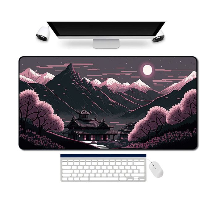 Midnight Minka Mountain Desk Mat, Sakura Blossom Gaming Pad, Japanese Scenery Mousepad, Anti-Slip Writing Mat, Water Resistant Office Decor Seller details
