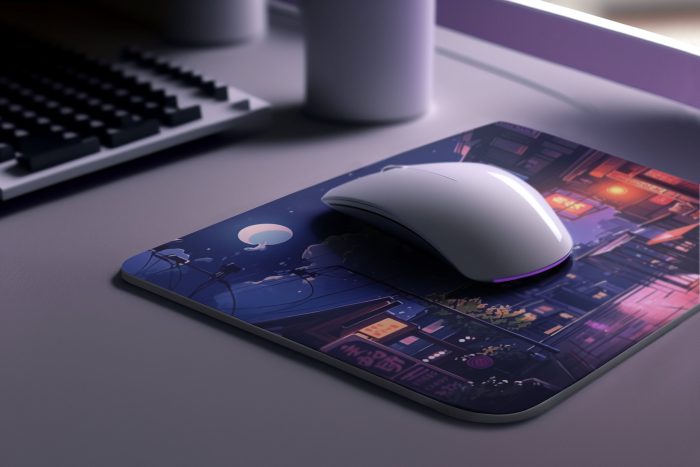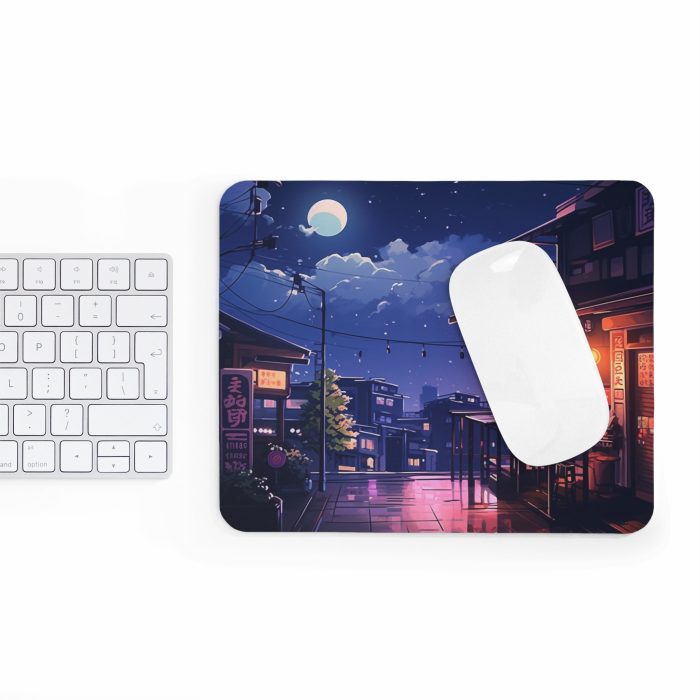 Moonlit Serenity Japan Serenity Lo-Fi Mousepad – 4 mm Tranquil Japanese Street Scene Desk Mat – Office Accessories for Peaceful Workspaces