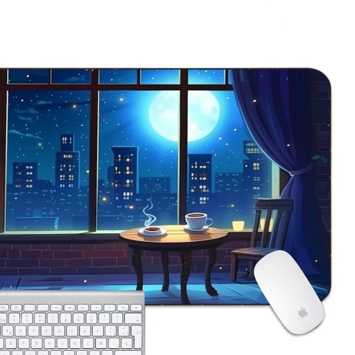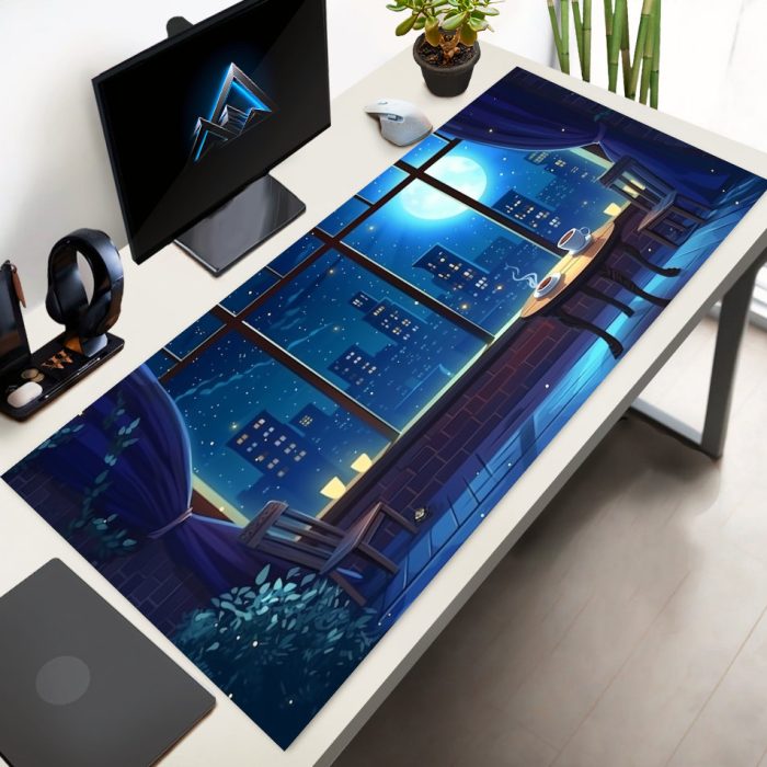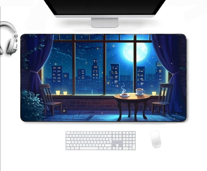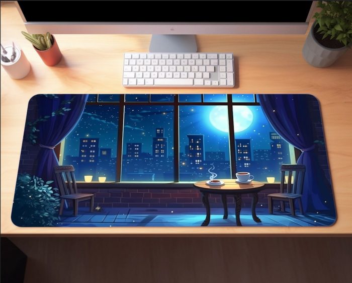 Mouse Pad Lofi, Window View Desk Pad, Night Full Moon Desk Mat, Starry Night Mouse Pad, Mouse Pad Street View Desk Mat, Gift for her