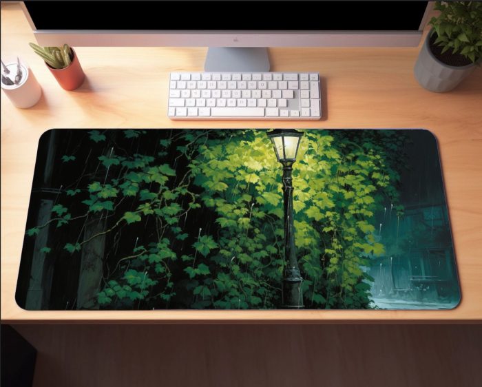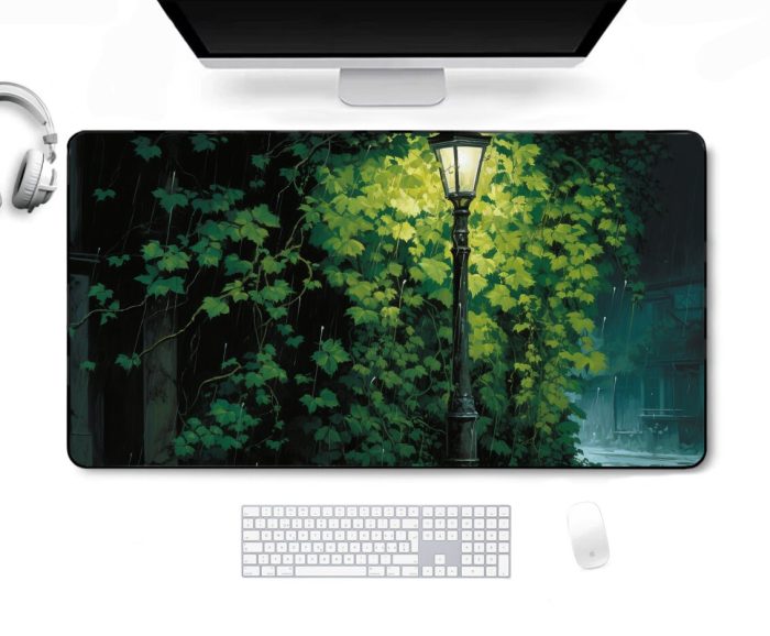 Nature Desk Mat, Plant Mousepad, Green Mousepad, Fantasy Desk Mat, Lofi Street Lantern Mousepad, Aesthetic Mousepad XL, Office Desk Mat