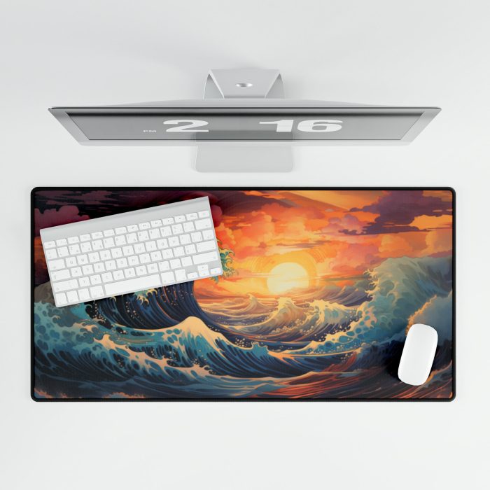 Ocean Sea Surfing WAVES at Sunset Japanese Anime Desk Mat, Anime Design Mouse Pad, Ocean Waves Office Decor, Huge Waves Desk Mat Seller details