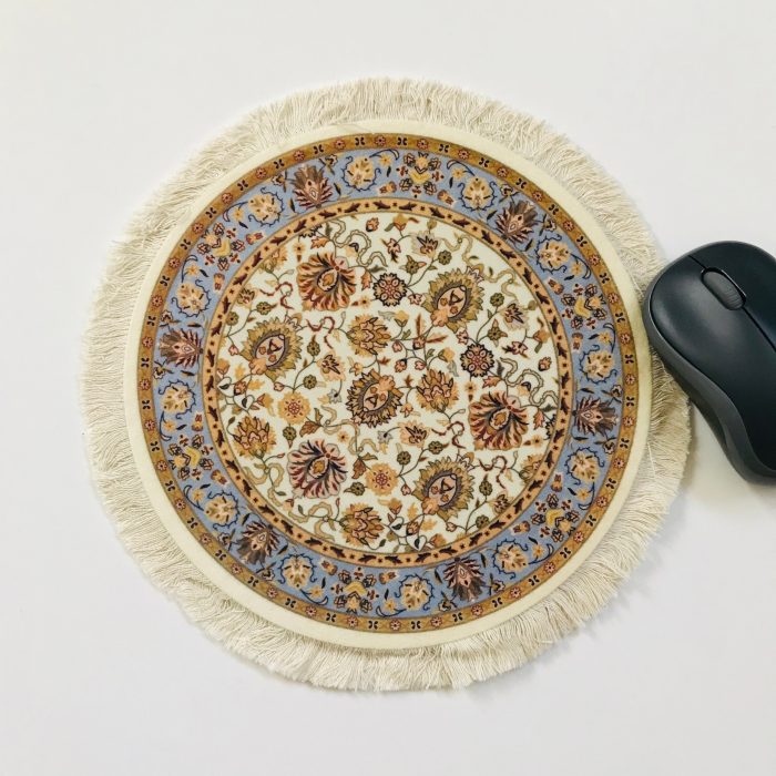 This beautiful authentic Persian/Oriental Round Rug Mouse Pad with Anti-Slip Back will add some color to your work place/Desk, a perfect partner for your computer or laptop featuring anti-slip rubber backing topped with Real polyester fabric for a smooth mouse action all finished off with ornamental tassel edges… very decorative so can be used as a mouse mat/mouse Pad or simply as an attractive table top mat in the living room, hallway etc.