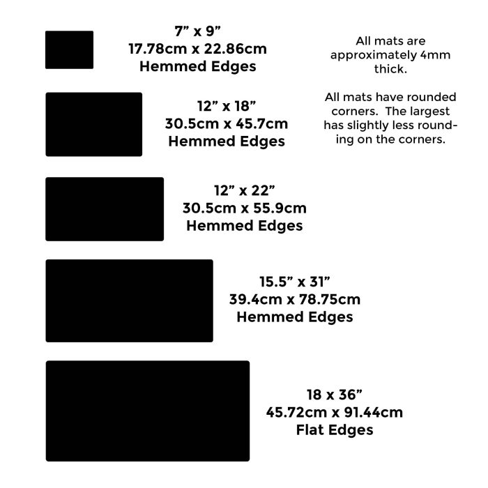 – Multiple sizes from tiny or small to XL and XXL to suit most desk or workspace dimensions
