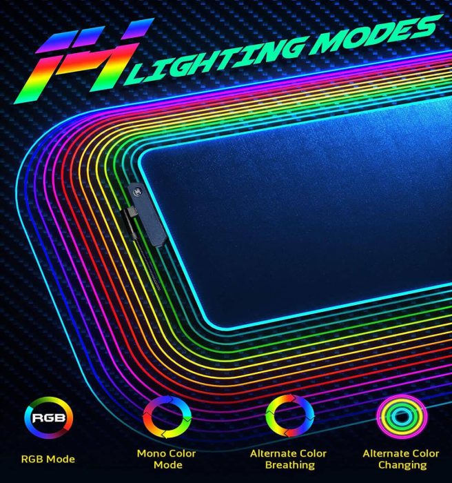 ⌨ For Led Light Pad: 12RGB Lighting Mode, 9 kinds of static lighting modes and 3 dynamic lighting modes.You can press 3 seconds to turn off the light if you want. Also you can use rainbow mode which will match up with RGB keyboard and gaming mouse.