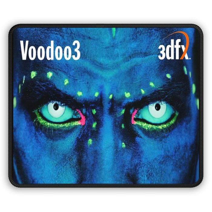 Celebrate the Voodoo3 with this GPU box art inspired gaming mouse pad. Printed with dye sublimation for crisp details and bright colors, the pad is 2.79mm thick with stitched edges for added resilience and a professional feel.