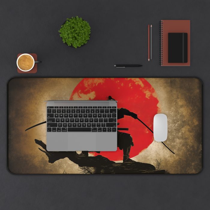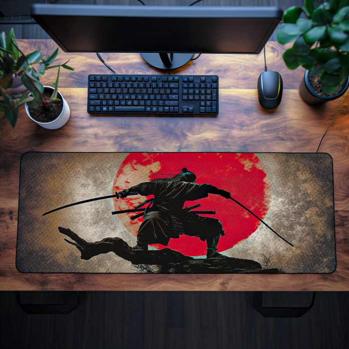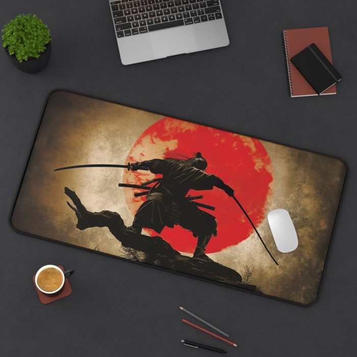 Samurai Desk Mat, Japanese Mouse Pad, Oriental Large gaming mousepad , Chinese deskmat Fuji Oni Warrior, Dark Japan Oriental Art