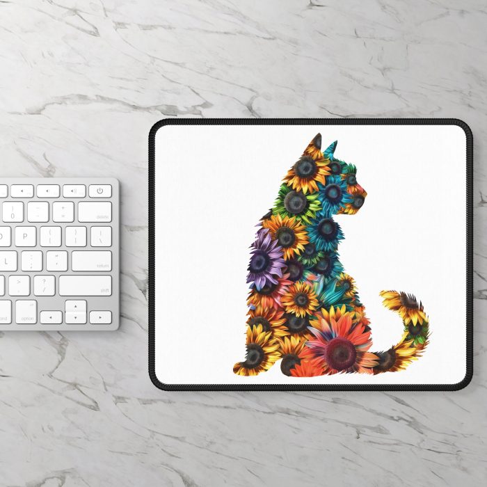 Sunflower Cat Mouse Pad! Whether it’s browsing, working, or gaming, these 9×7 inch Sunflower Cat Mouse Pads deliver a smooth experience with a custom cat design.