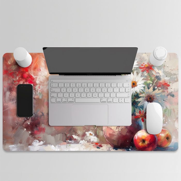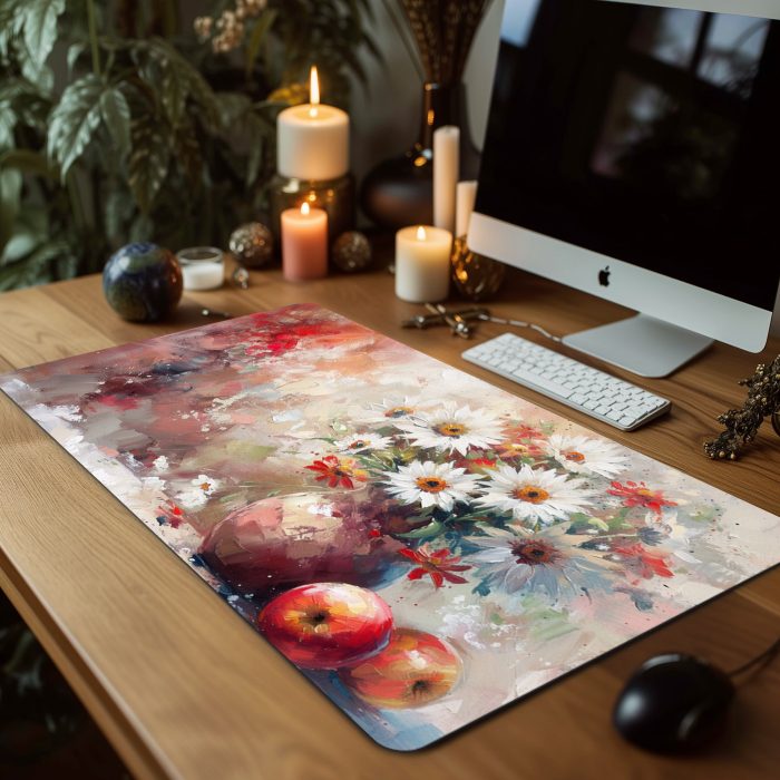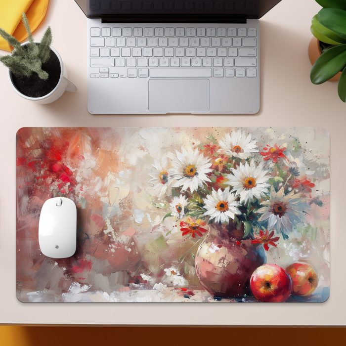 Watercolor Oil Painting Flower Desk Mat Daisy in Vase Mouse Pad Office Decor Floral Pad Large Computer Pad for Nature Lovers